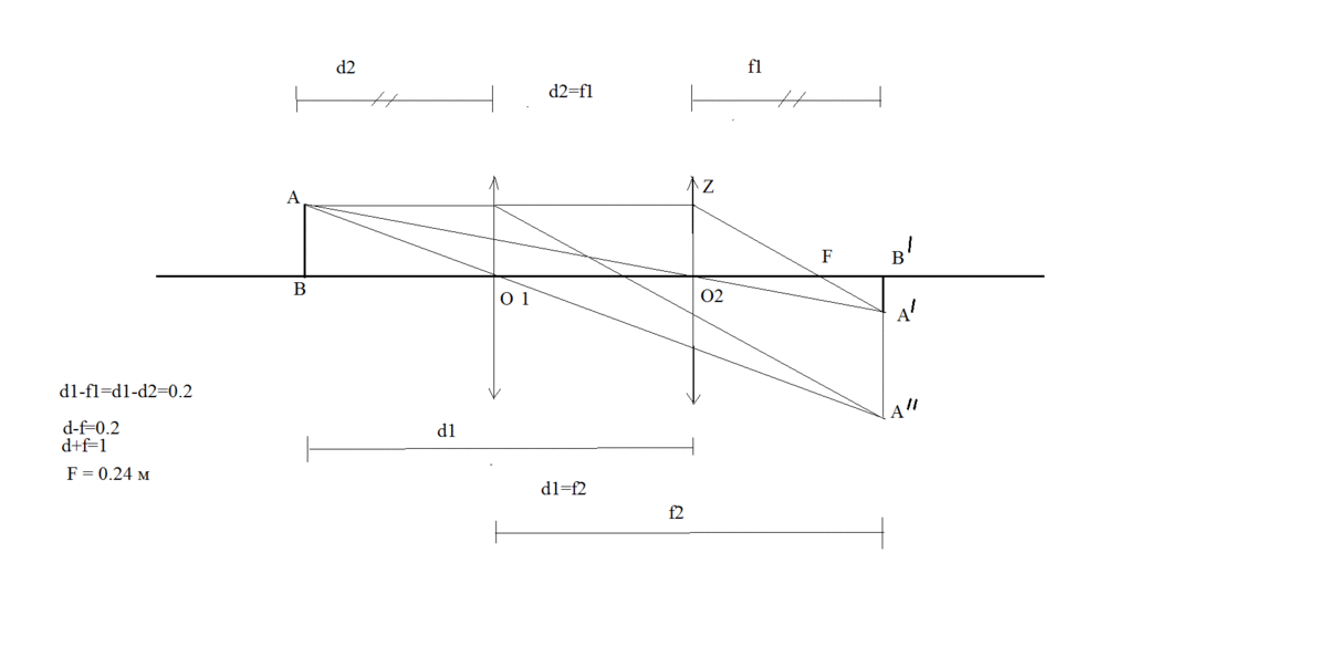 Поскольку при прохождении лучей справедливо утверждение, что их траектории не меняются при повороте направления, то отношение длины уменьшенного изображения к длине предмета равно отношению длины увеличенного изображения к длине предмета.