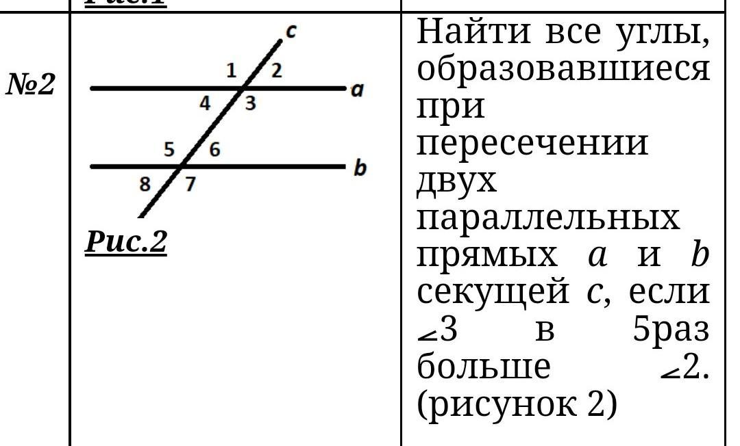 найти все углы образовавшиеся при пересечении двух параллельных прямых a и b секущей c если угол 3 в 5 раз больше угла 5