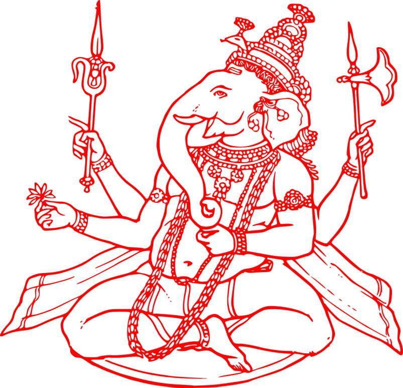 К какому пантеону относится изображённый бог? Почему он представлен с головой слона? Ответ на задание должен содержать не менее двух предложений.