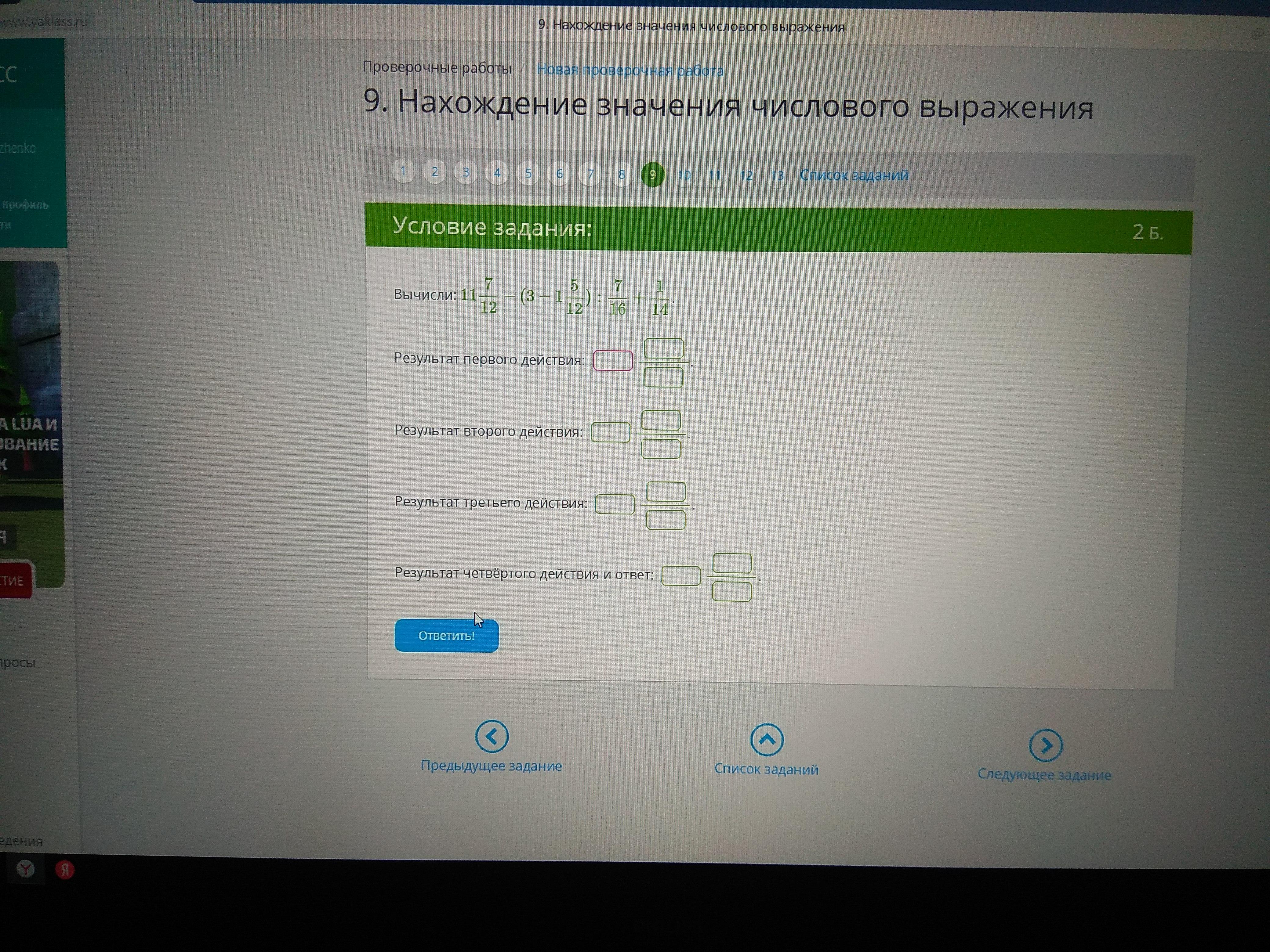 11 7/12-(3-1 5/12):7/16+1/14=8 1/28