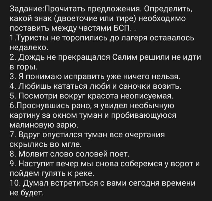 7)Вдруг опустился туман - все очертания скрылись во мгле.