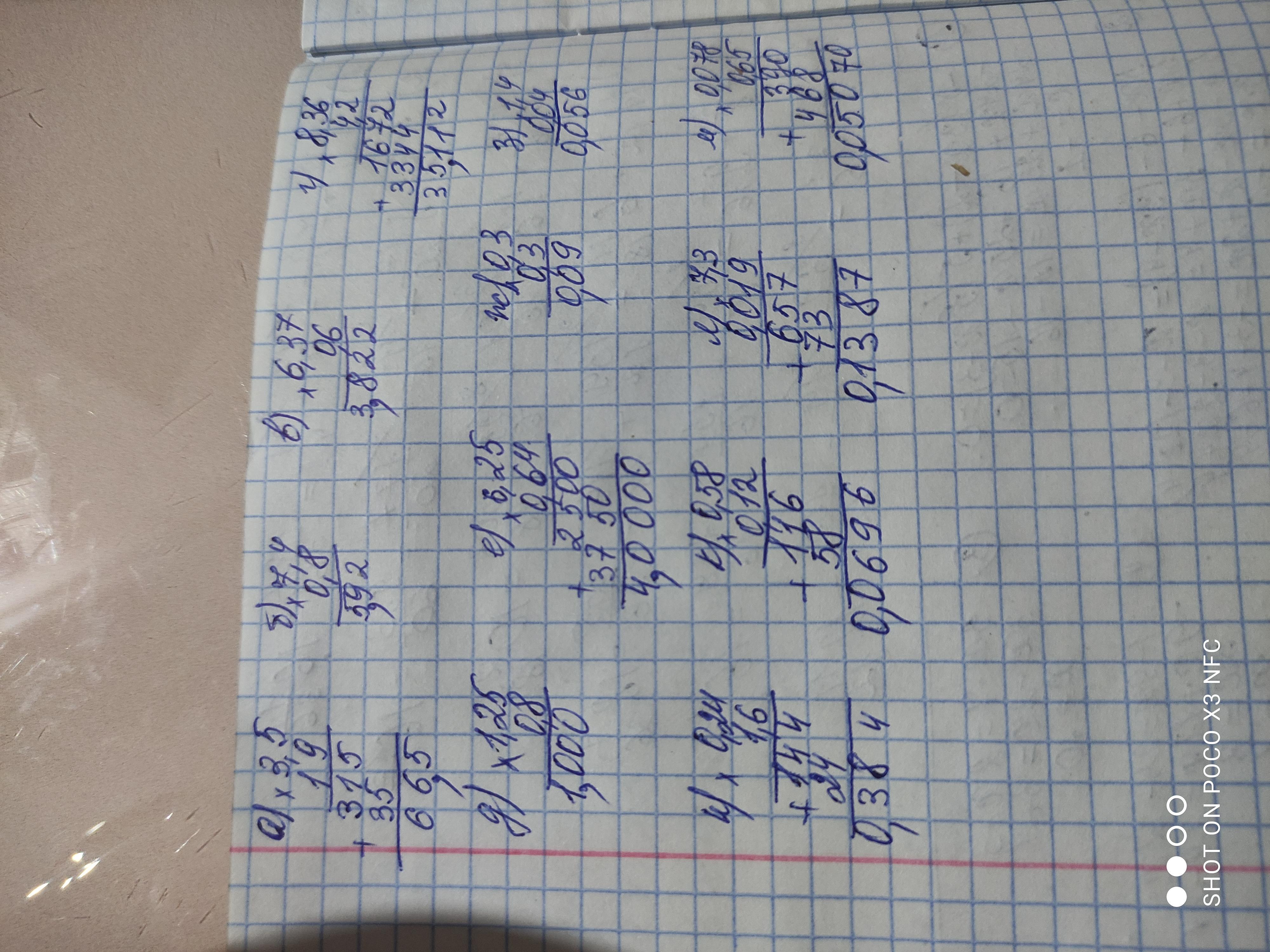 а) 66, 5 б) 5,92 в) 3,822 г) 35,112 д) 1 е) 4 ж)