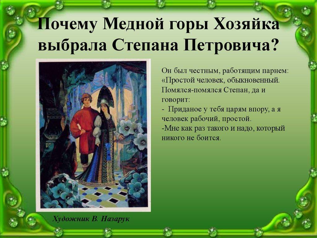 Желала узнать нрав мастера, испытать его. Степан приглянулся Хозяйке.