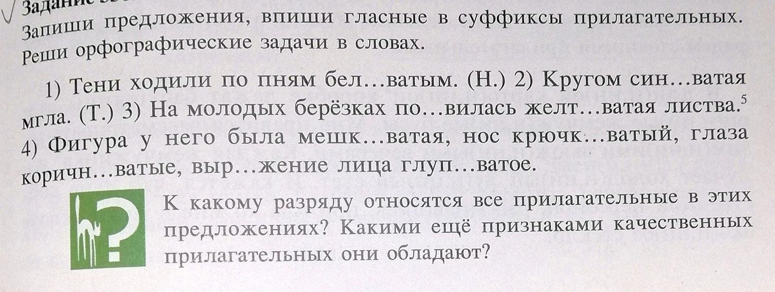 Беловатым, синеватая, появилась, желтоватая, мешковатая, крючковатый, коричневатые, выражение, глуповатое