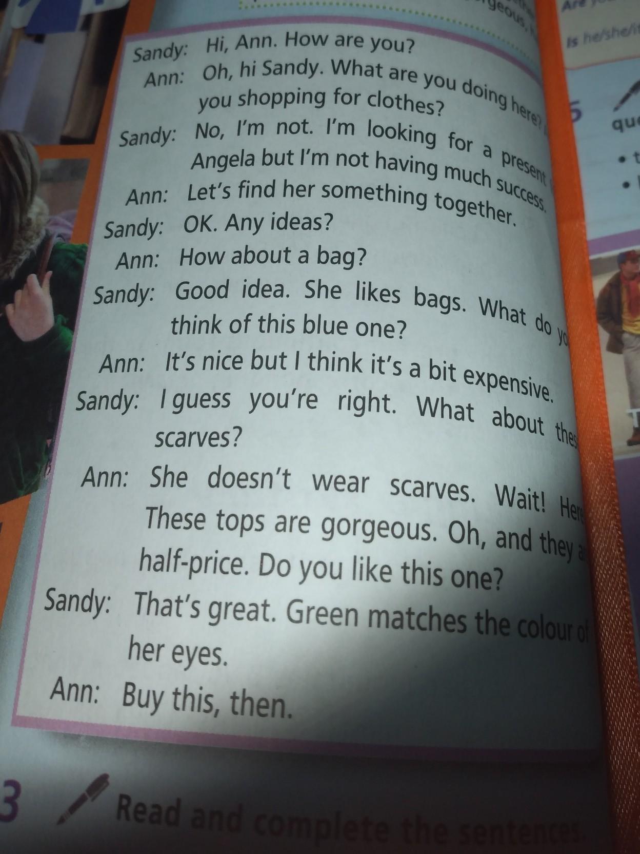А: Ох, Привет Сэнди, Что ты здесь делаешь?Ты покупаешь одежду?