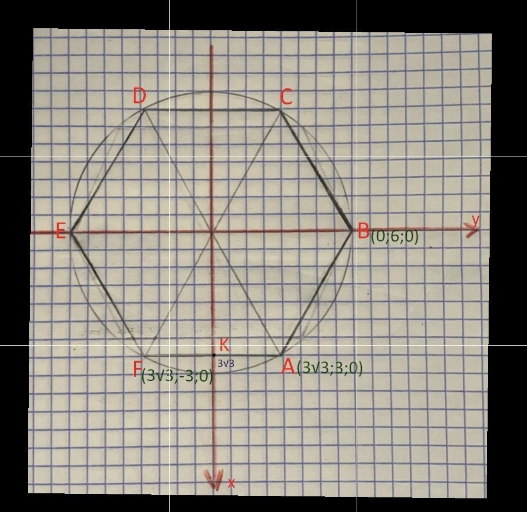 В(0;6;0) ; F(3√3; -3;0)
