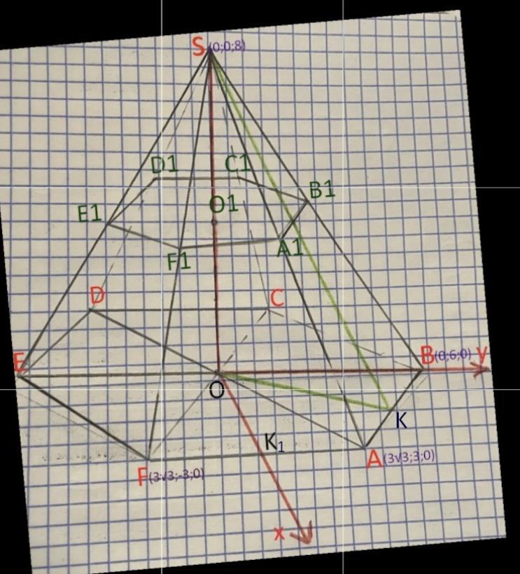S(0;0;8) ; А(3√3;3;0)