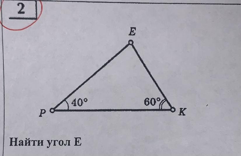 Угол Е = 180 - угол Р - угол К = 180 - 40 - 60 = 80 градусов