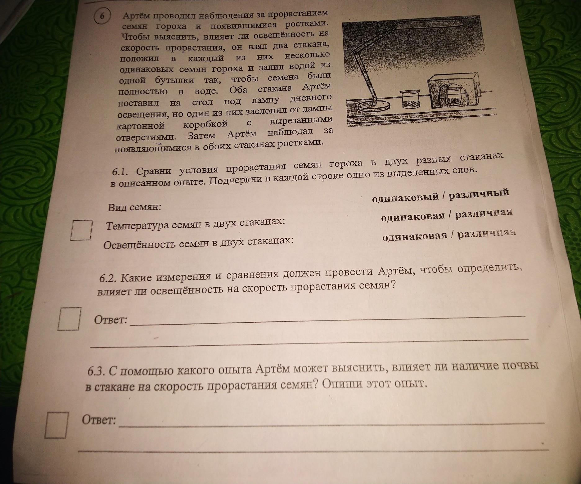 Сравни условия прорастания семян гороха в 2 разных стаканах в описанном опыте подчеркни В каждой строке одно из выделенных слов