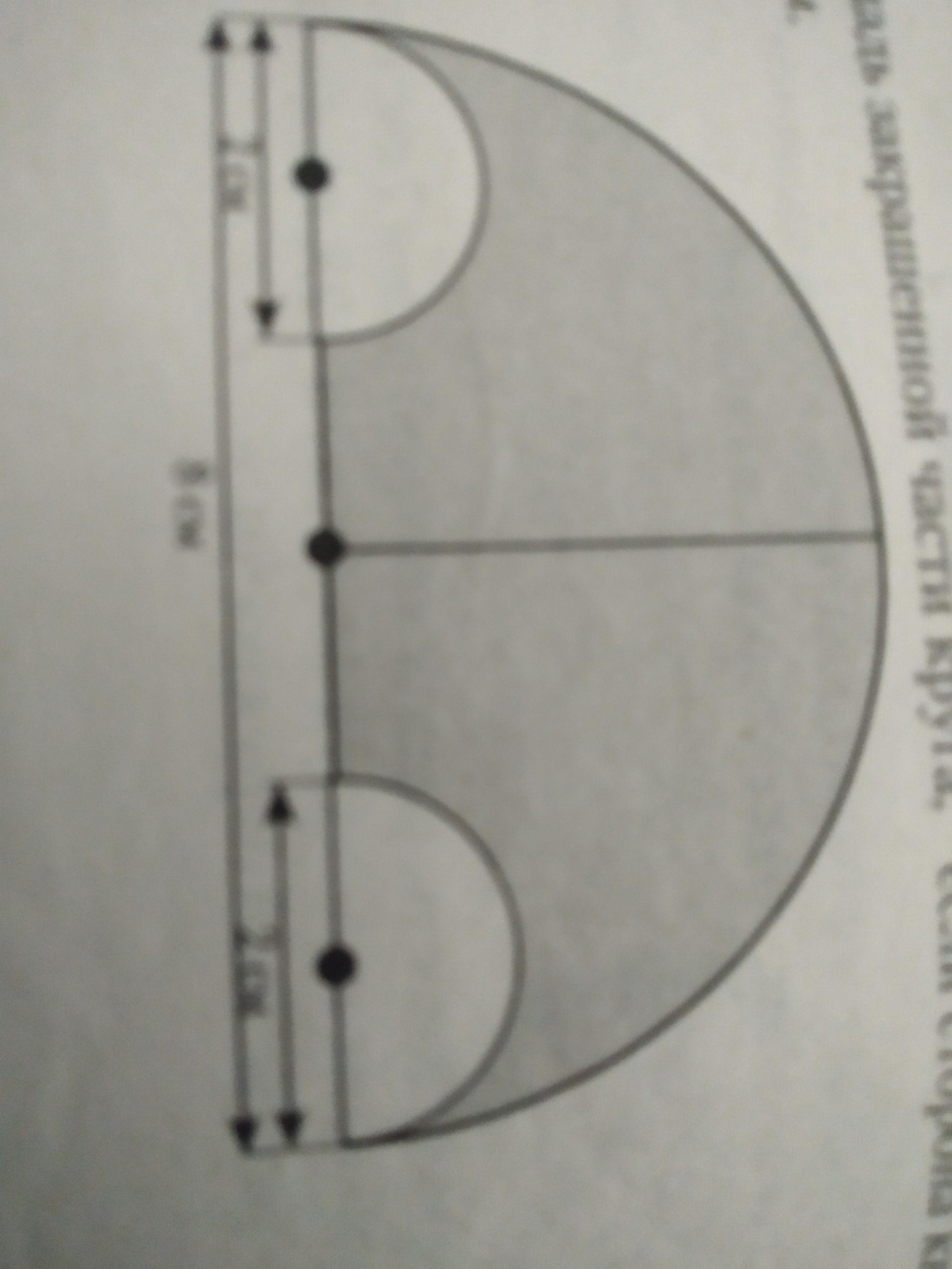 Радиус неокрашенного полукруга: r₁=d₁/2=2/2=1 см