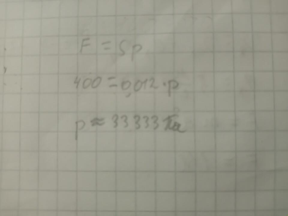 визначити тиск людини на підлогу площі 120 см² в квадраті і силою 400 Ньютон з якою людина прикладає до підлоги