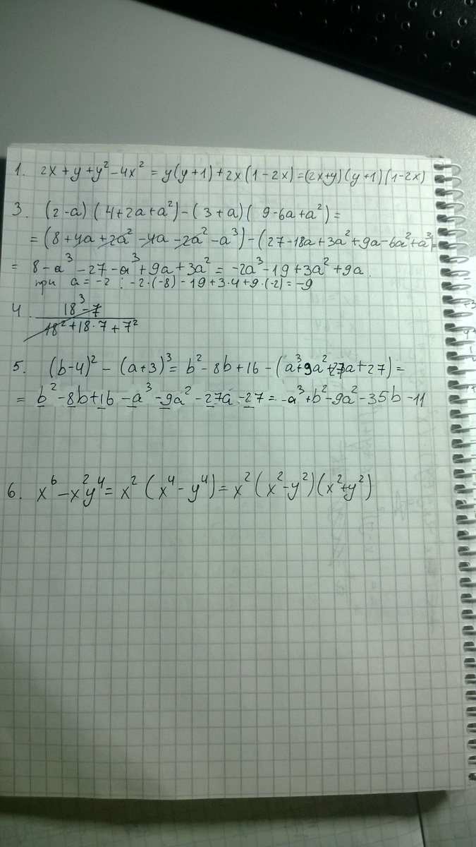 5)Разложите на множители: (b-4)^2-(a+3)^3.