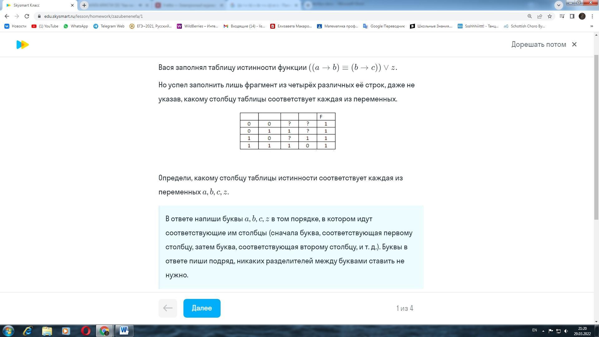 Составим вспомогательную таблицу и будем искать все варианты значений переменных по выражению: