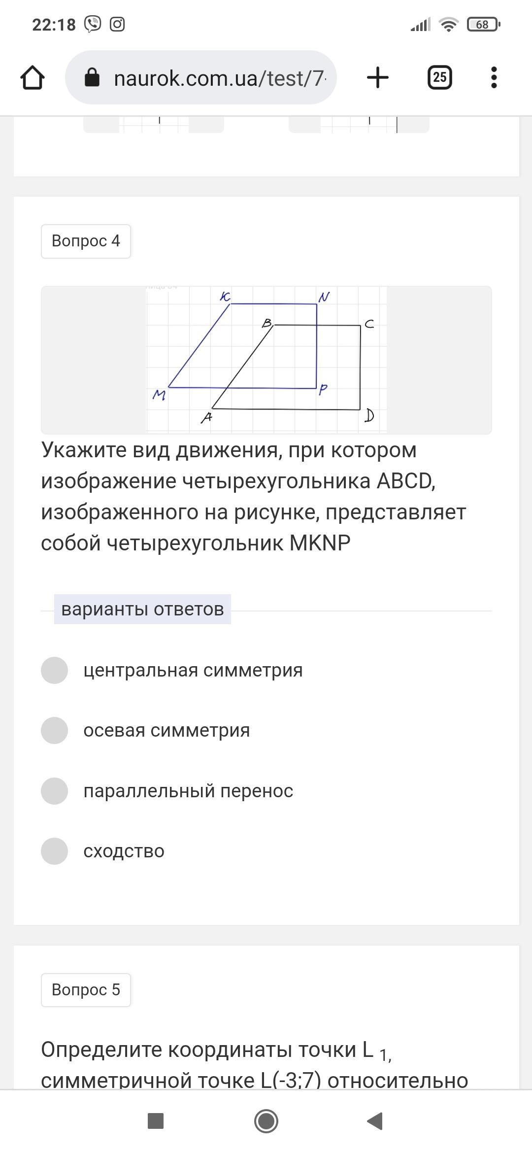 Укажите вид движения при котором четырехугольник ABCD изображённого на рисунке представляет собой четырехугольник МКNP