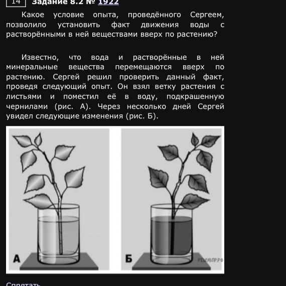 Ветка впитала в себя чернила. По сосудам ветки чернила пойдут вверх по древесине, и прожилки на листьях окрасятся в цвет чернил.