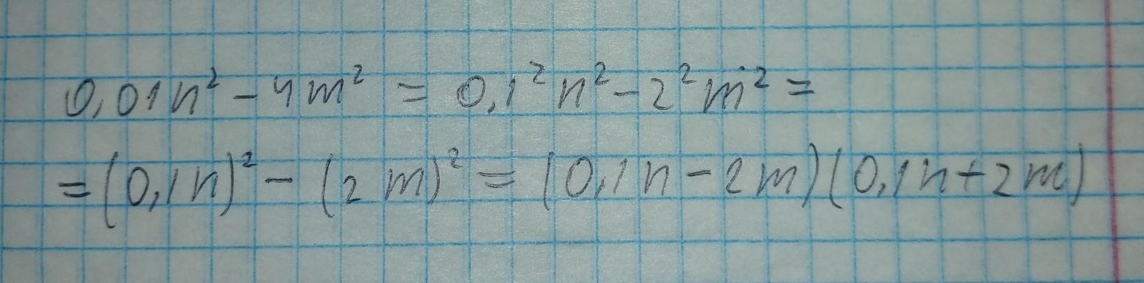 = (0,1 n - 2m) • (0,1n + 2m) ( формула разности квадратов)