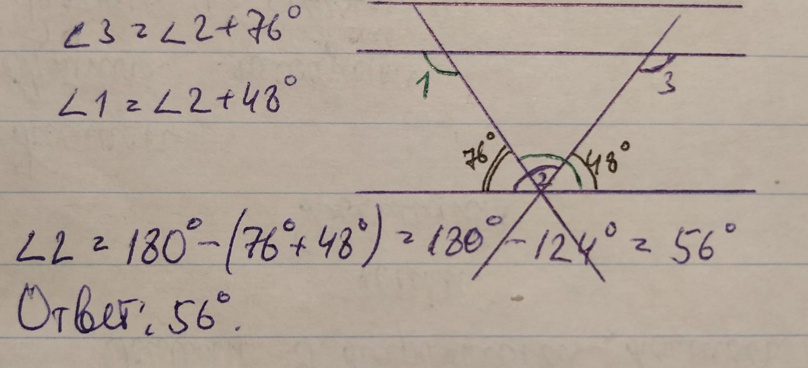 26.a ll b,  угол 3=угол 2+76°, угол 1-угол 2+48°. Найдите угол 2 (рисунок 10).
