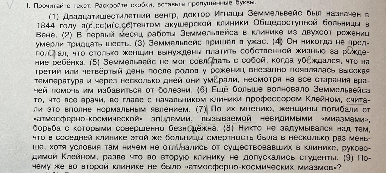 5) Заммельвейс не мог совладать с собой (составное глагольное сказуемое с синтаксически неделимым словосочетанием); убеждался (простое глагольное сказуемое); температура появлялась (простое глагольное сказуемое); они умирали (простое глагольное сказуемое); помочь избавиться (составное глагольное сказуемое);