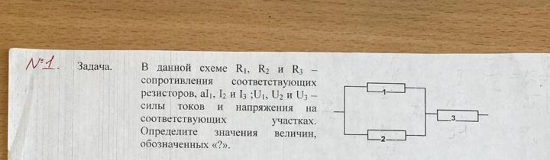 R1, R2, I2, U1, U3, Rобщ, Iобщ, Uобщ