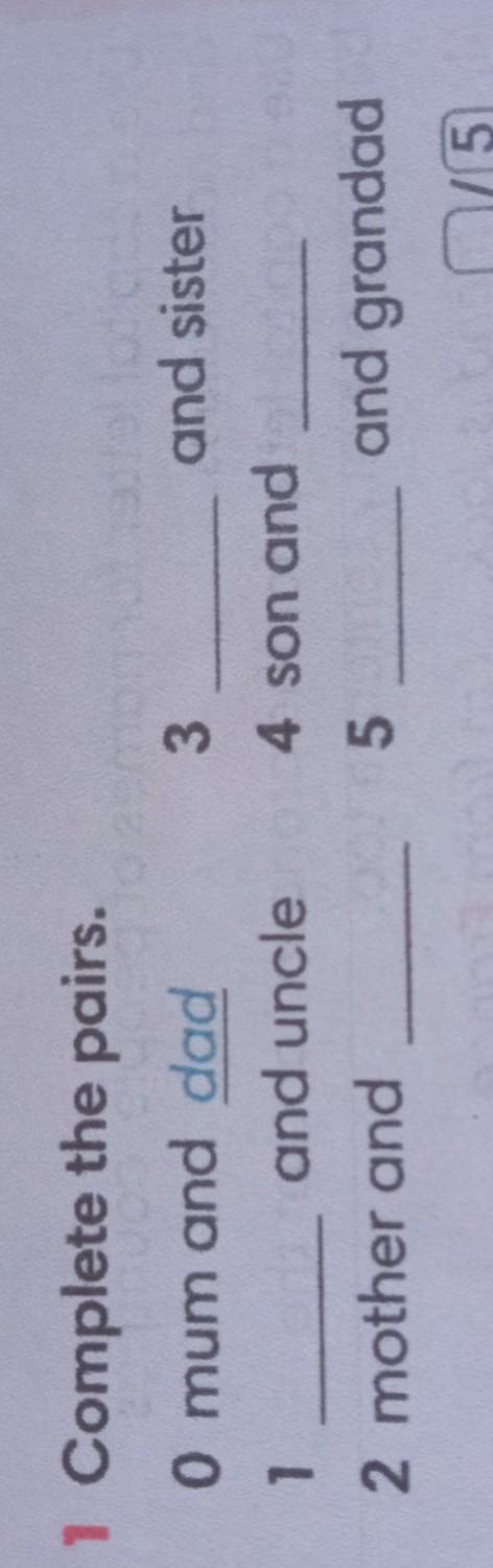 1 aunt 2dad 3 brother 4 daughter 5 grandfather