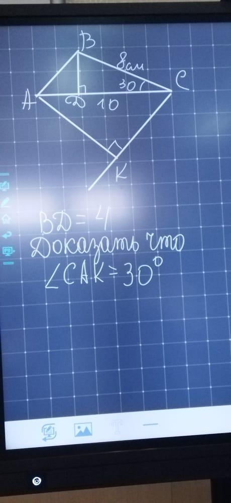 Угол А равен 30 так как угол АКС =90 градусов, сторона АС равна 10 это гипотенуза