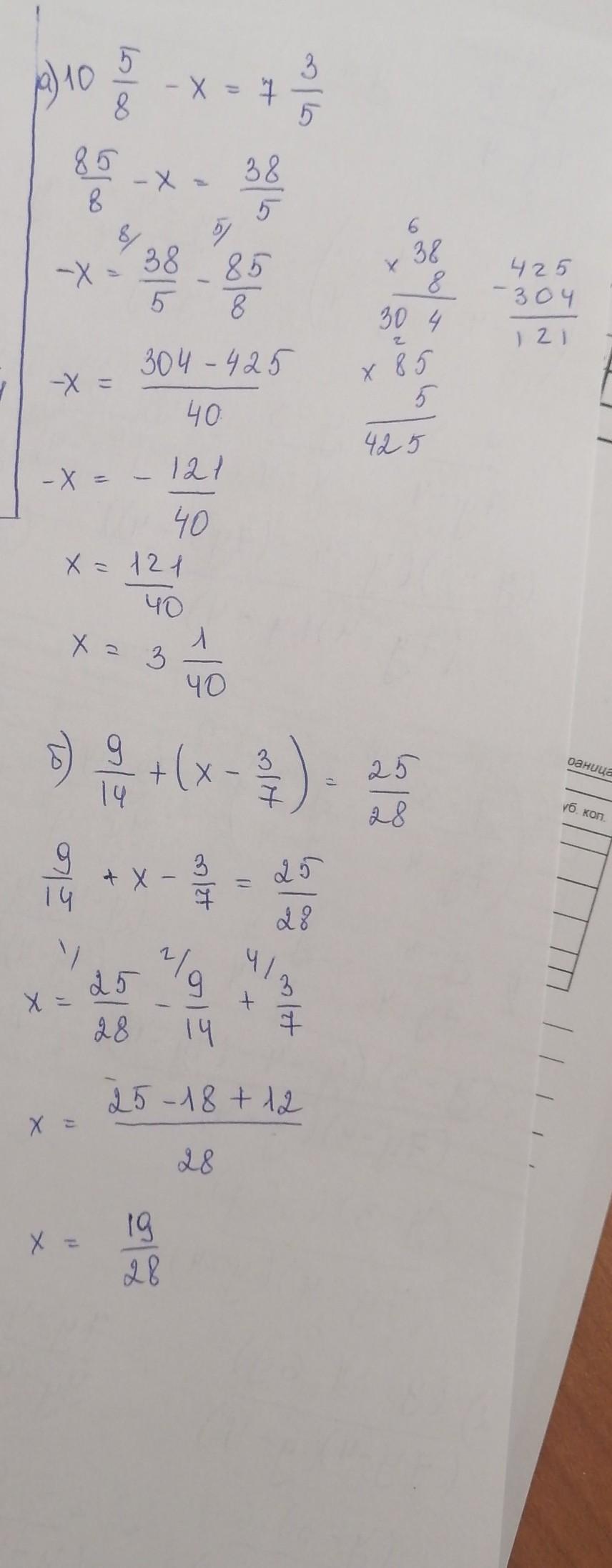 а) х=10 5/8 -7 3/5=3(25-24)/40=3 1/40;