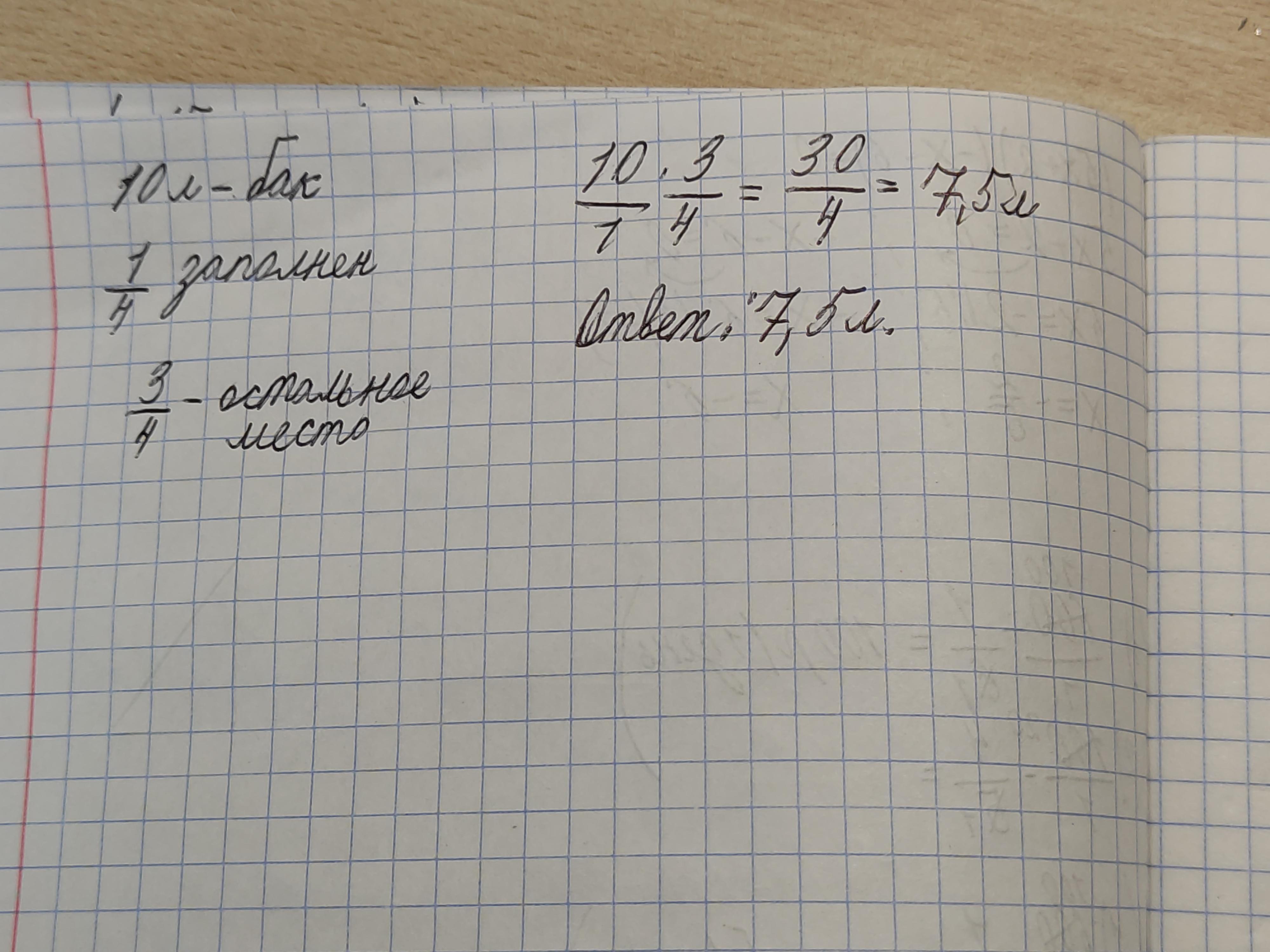 7,5 литров воды нужно долить, чтобы заполнить бак