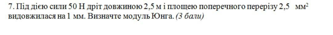 Е=Fl/(SΔl)=50*2500/(0,0000025*1)=5*10¹⁰Па