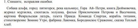 собака Альфа, город Пятигорск, река Кальмиус, гора Ай-Петри, книга "Дюймовочка", журнал "Мурзилка", спектакль "Золушка", приключения Петрова и Васечкина, картина "февральская лазурь", газета "Правда", команда "Спартак", корабль "Титаник", стихотворение "Зимнее утро", фабрика "Лакомка", Бородинское сражение, сказка "Теплый хлеб"