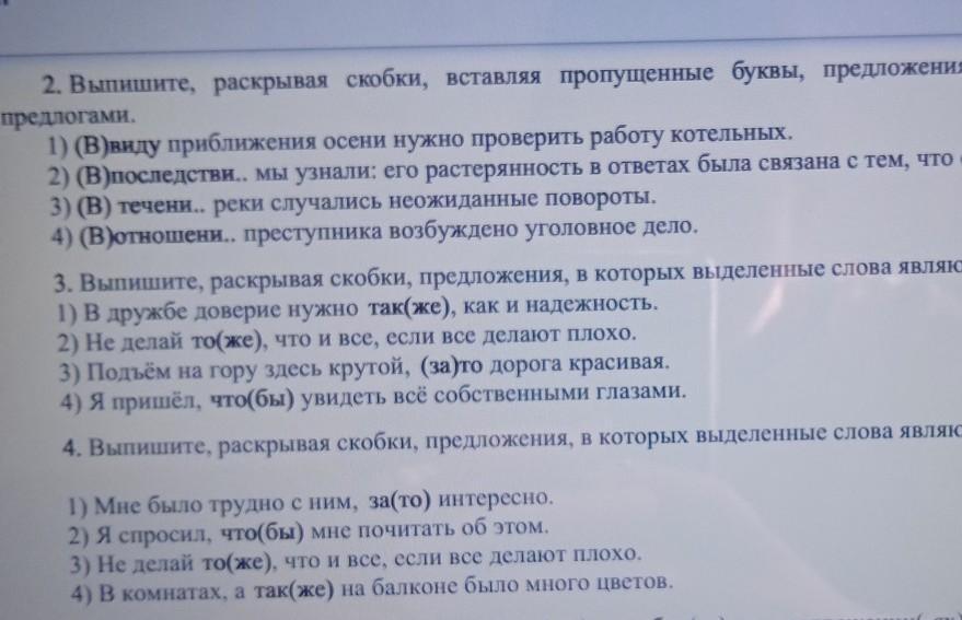 здесь нужно во 2 задании выписать предложения, в которых выделенные слова я являются предлогами, а в 3 и 4 которые являются союзами.