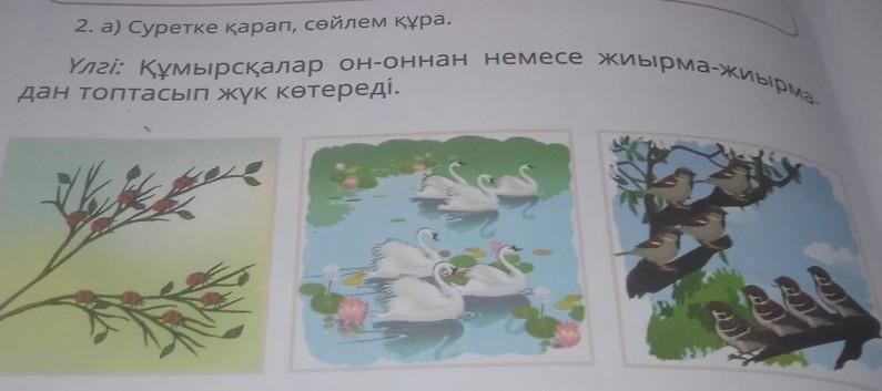 2. а) Суретке қарап, сөйлем құра. Үлгі: Құмырсқалар он-оннан немесе жиырма-жиырма- дан топтасып жүк көтереді.