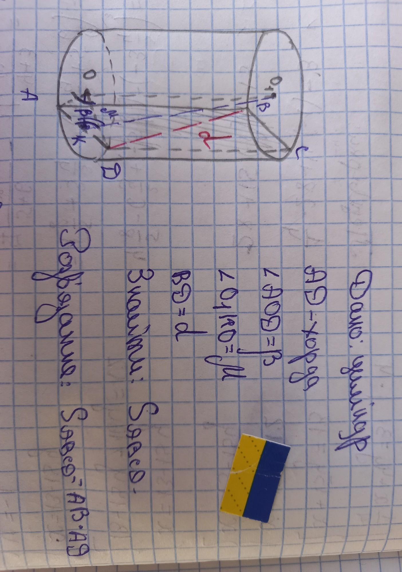 У циліндрі паралельно його осі проведено площину, що перетинає його нижню основу по