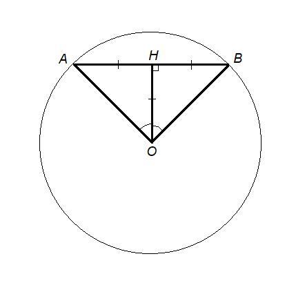 Проведем ОН⊥АВ и соединим центр окружности с концами хорды.