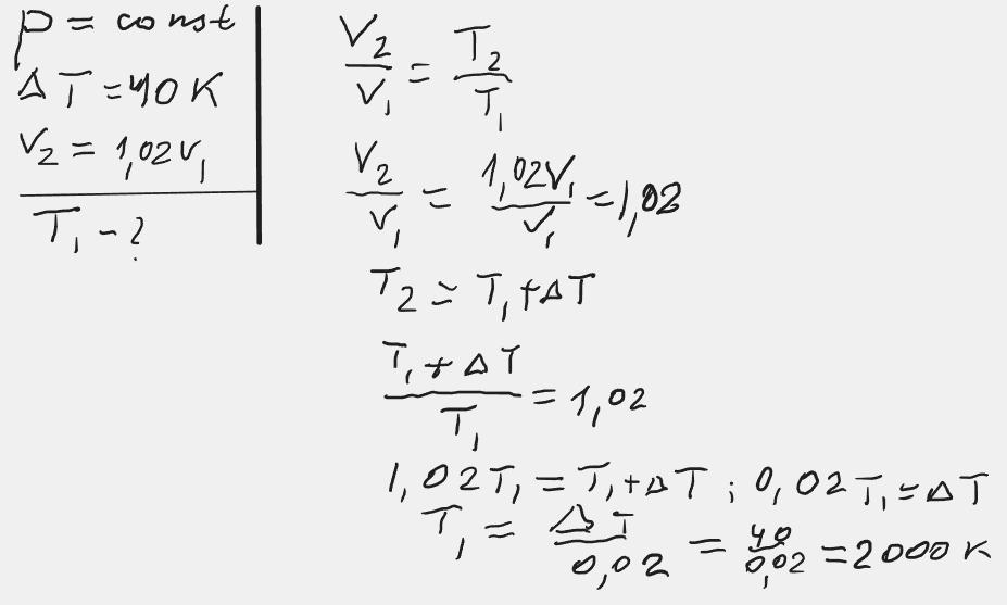 за якої температури містився газ, якщо в результаті ізобарного нагрівання на 40К його об'єм збільшився на 2%?