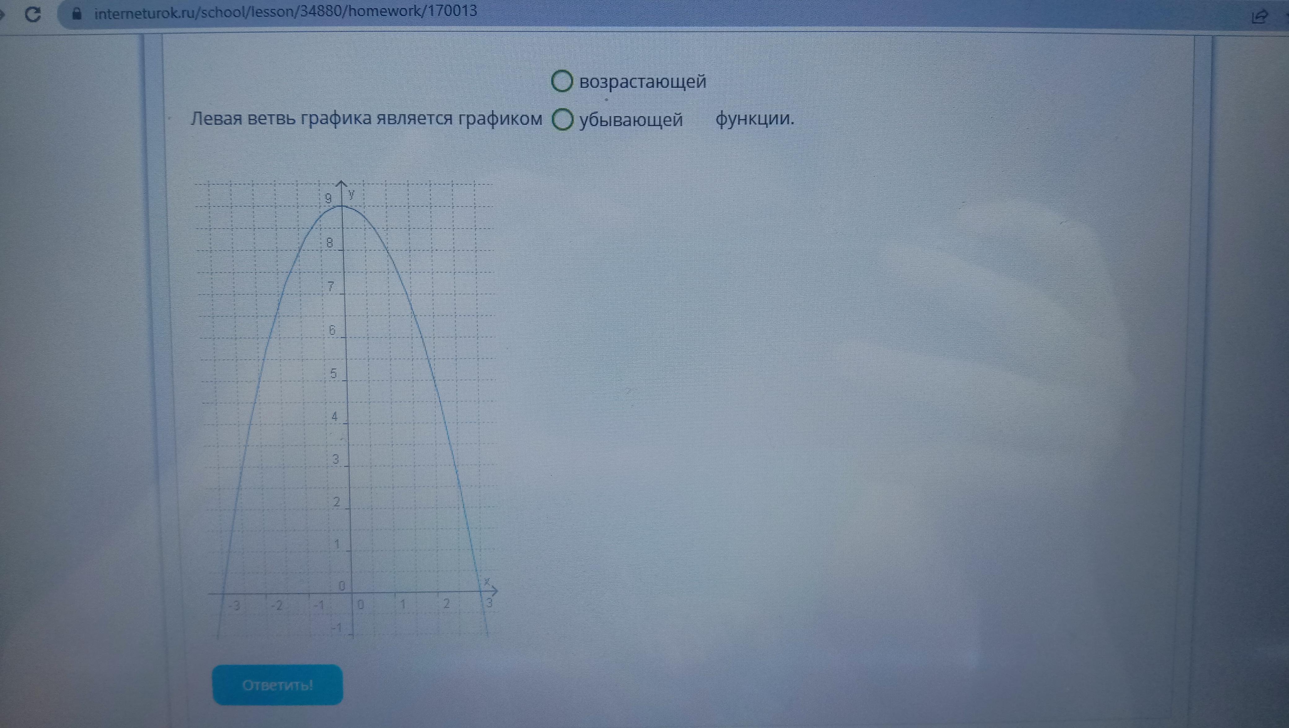 Левая ветвь графика является графиком возрастающей/убывающей функции.