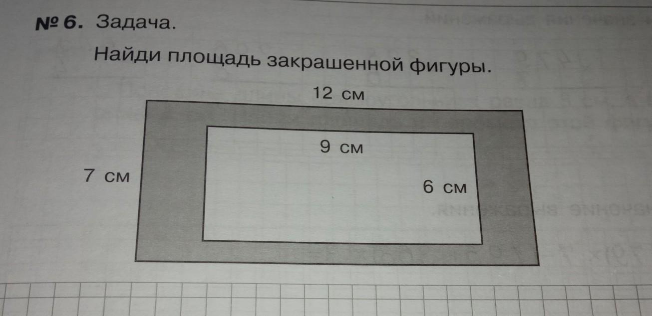 No 6. Задача Найди площадь закрашенной фигуры 12 см 9 см 7 см 6 см