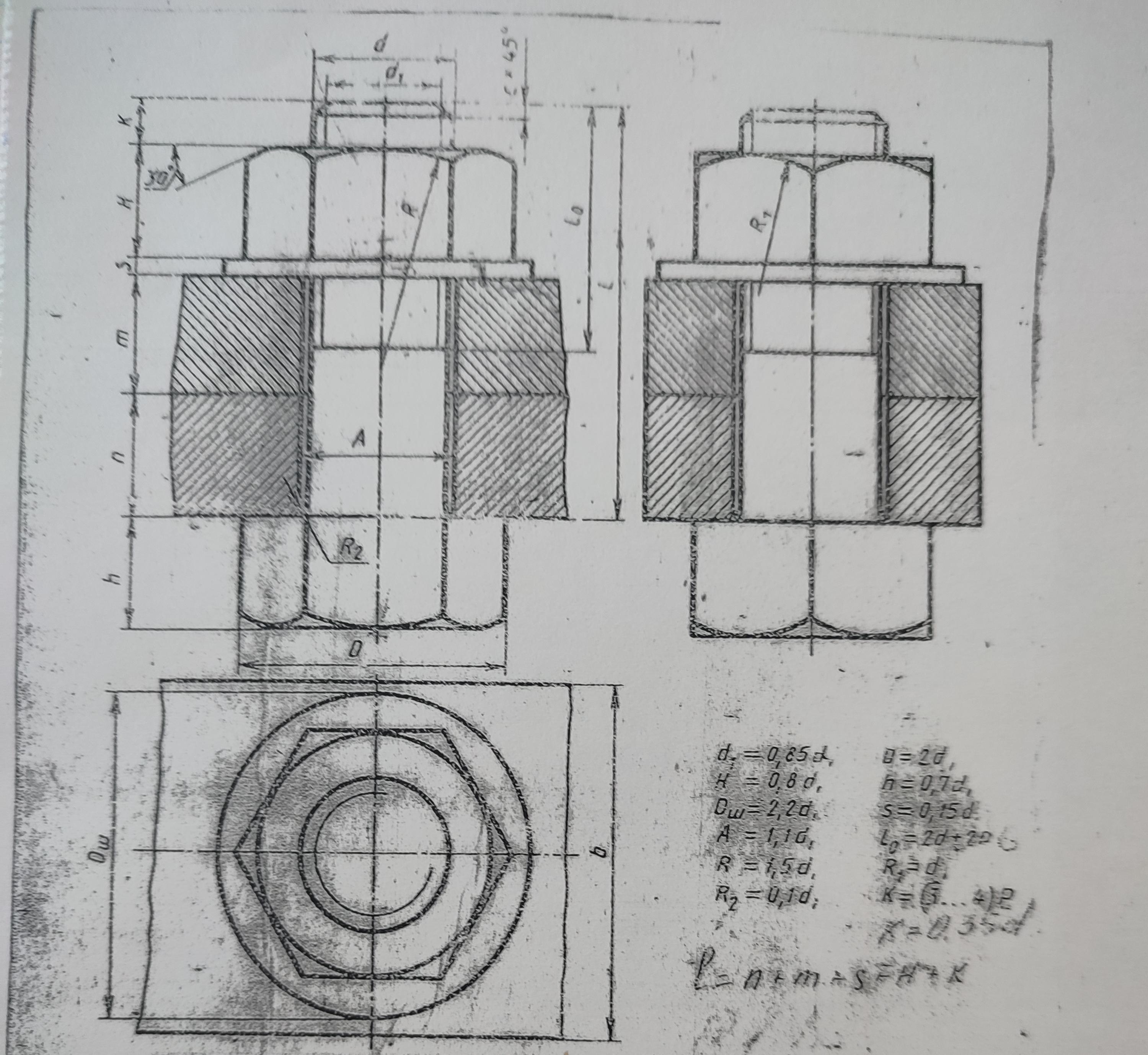 2.По выполненным расчётам вычертить болтовое соединение.