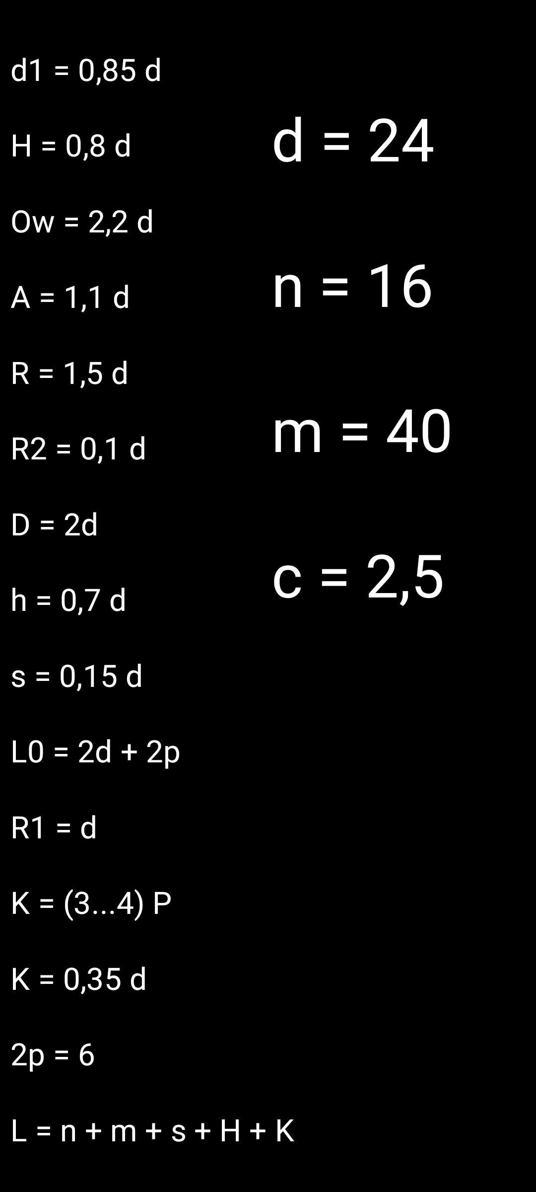 1.По заданному значению номинального диаметра рассчитать значение для выполнения болтового соединения.