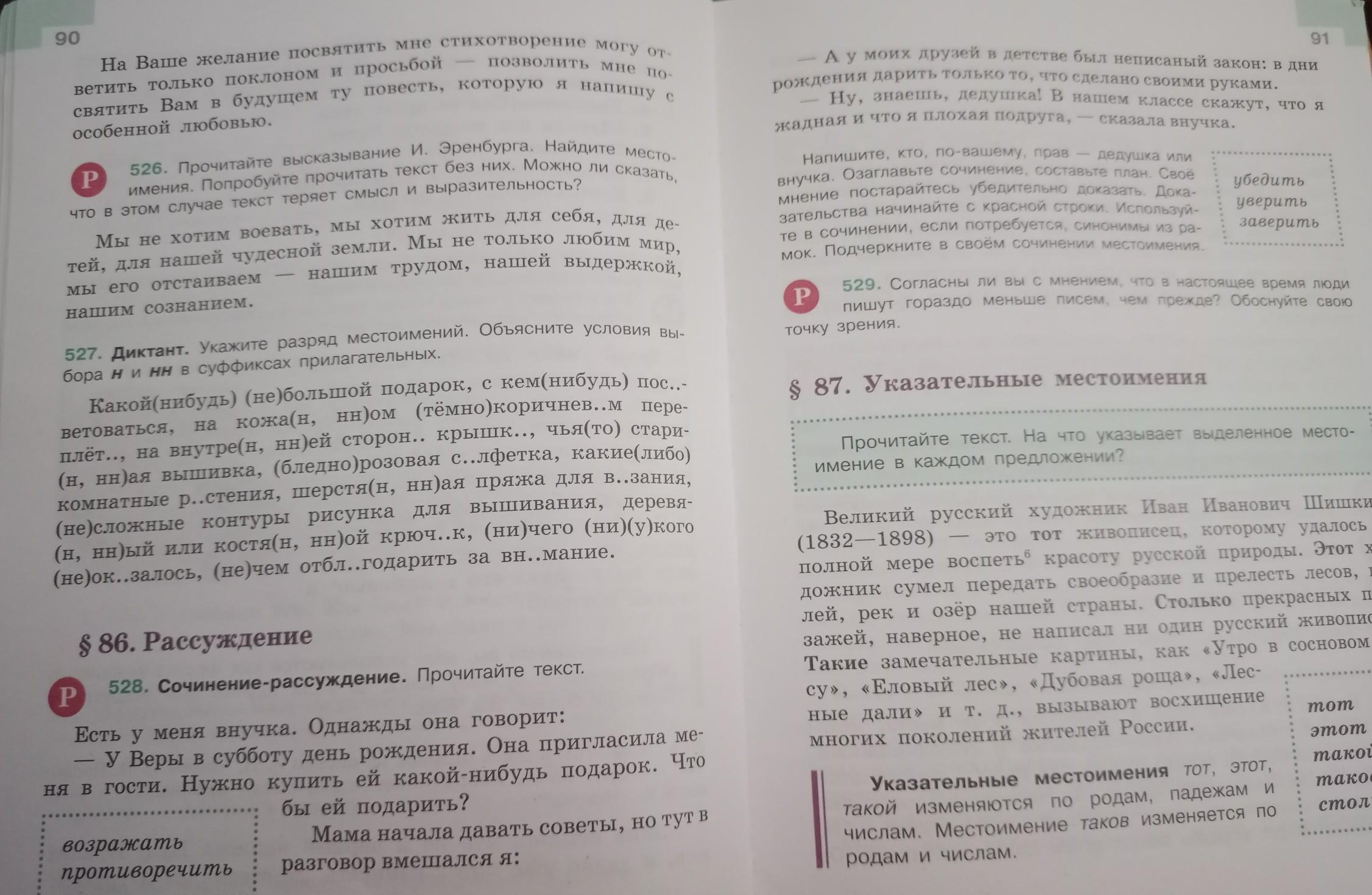 Она (лич. мест), меня (лич. мест), ей (лич. мест), какой-нибудь (неопр. мест), я (лич. мест), моих (притяж. мест), нашем (притяж. мест.)