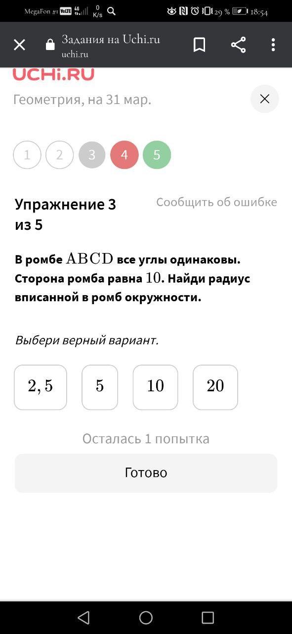 Так как все углы равны значит это квадрат, так как сумма углов в ромбе = 360 градусов => каждый угол по 90 и так как это ромб, то все стороны равны. Из этого следует, радиус вписанной окружности равен половине стороны квадрата => 10/2 = 5