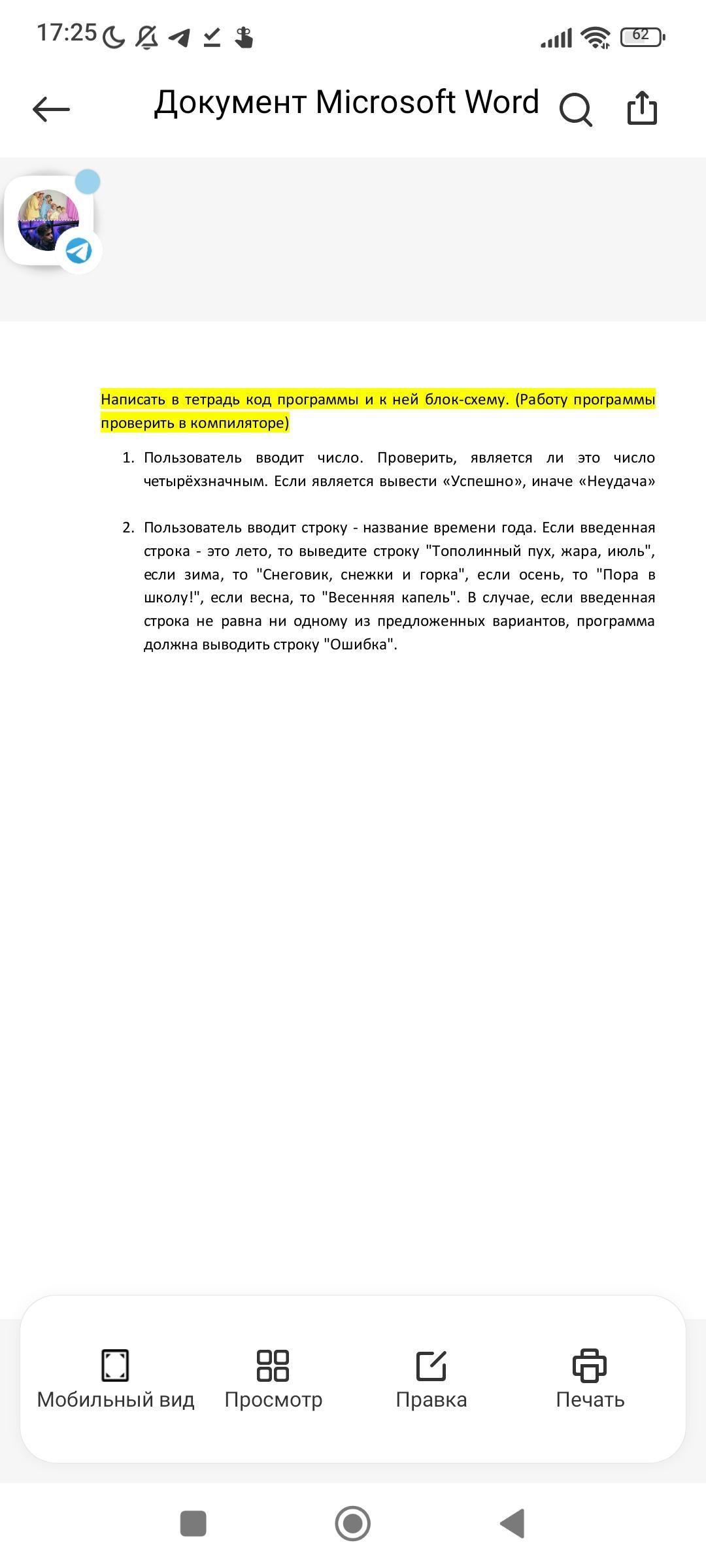 Начало(овал) -> ввод a(параллелограм) -> а == 'лето'? -> да(печатаешь текст(параллелограм)), нет(спрашиваешь зима ли, а потом также: если зима да, то выводишь текст, если нет спрашиваешь про осень и так до весны, а потом если не весна(последний блок), то ошибка) -> (после каждого последнего блока рисуешь черту до конца)конец(овал).