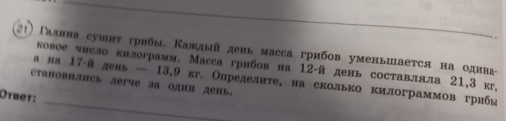 21,3-13,9=7,4 кг потеряла за 5 дней