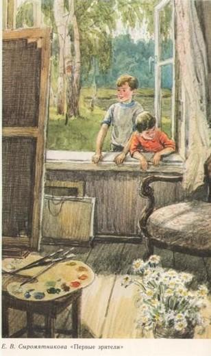 Сочинение по картине Е.ВСыромятниковой "Первые зрители" Написать краткое рассуждение и Кратко описать изображённое на картине