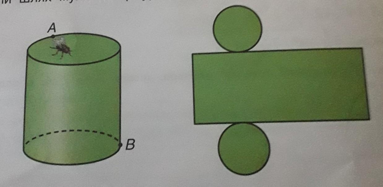 Ш. Виконай у робочому зошиті. 1. Виконай завдання. Муха рухається по видимій поверхні фігури з точки А в точку В Накресли шлях мухи на фігурі та на її розгортці .
