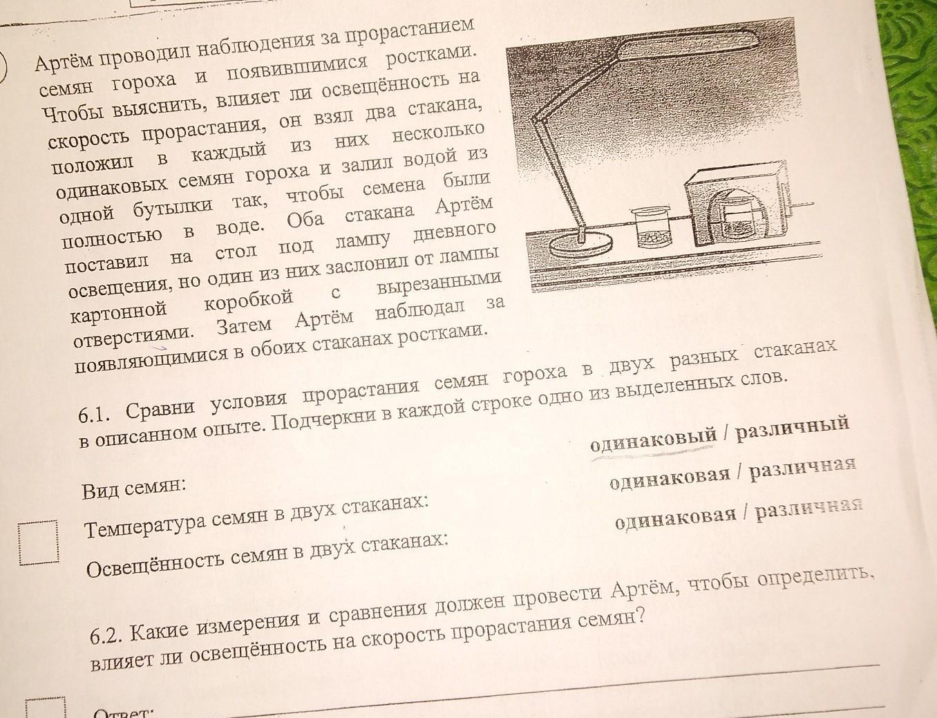 Какие измерения и сравнения должен провести Артём чтобы определить влияет ли освещенность на скорость прорастания семян