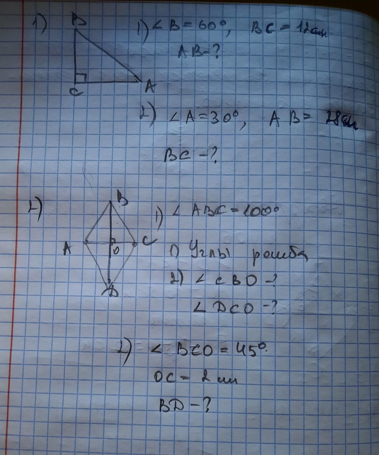 2) АВ = 28 см ; ∠А = 30° , тому ВС = 1/2 АВ = 1/2 *28 = 14 ( см ) ;