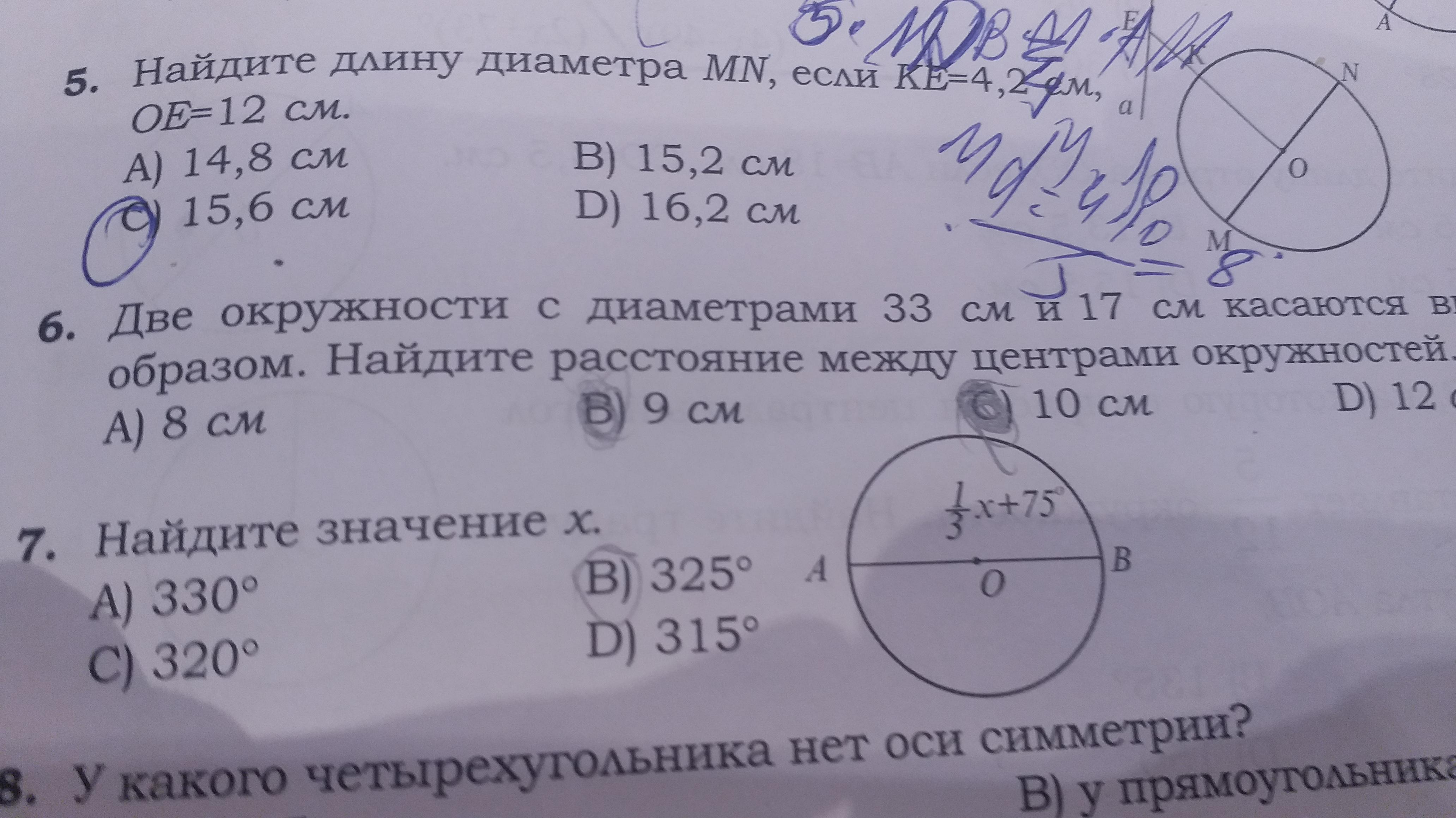 7 . ∪АВ = 1/3 х + 75° ; ∪АВ = 180° , тому