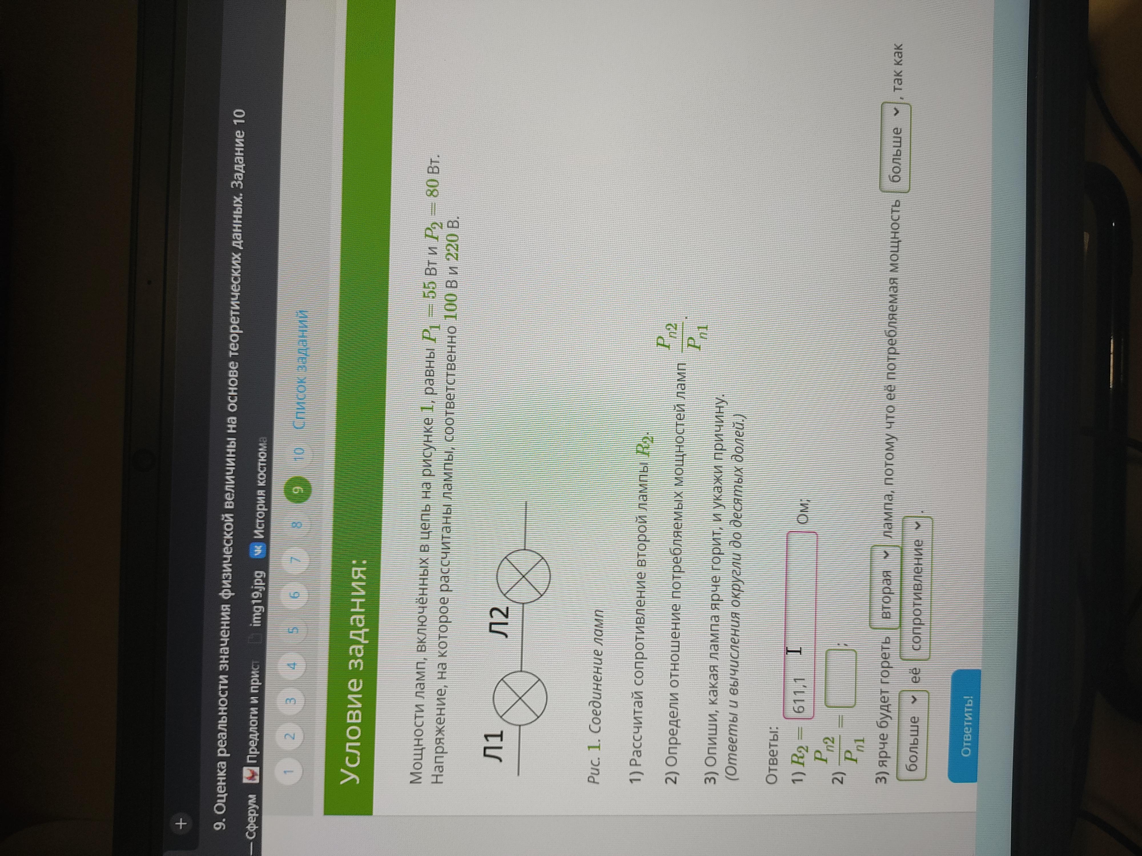 8 класс. Что значит определите отношение потребляемых мощностей ламп Pn2/Pn1