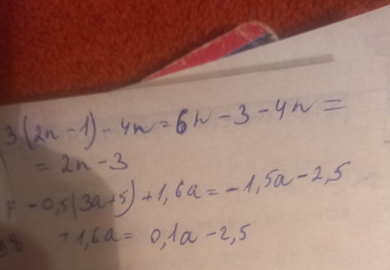 -0,5(3а+5) +1,6а = -1,5а - 2,5 + 1,6а = 0,1а-2,5