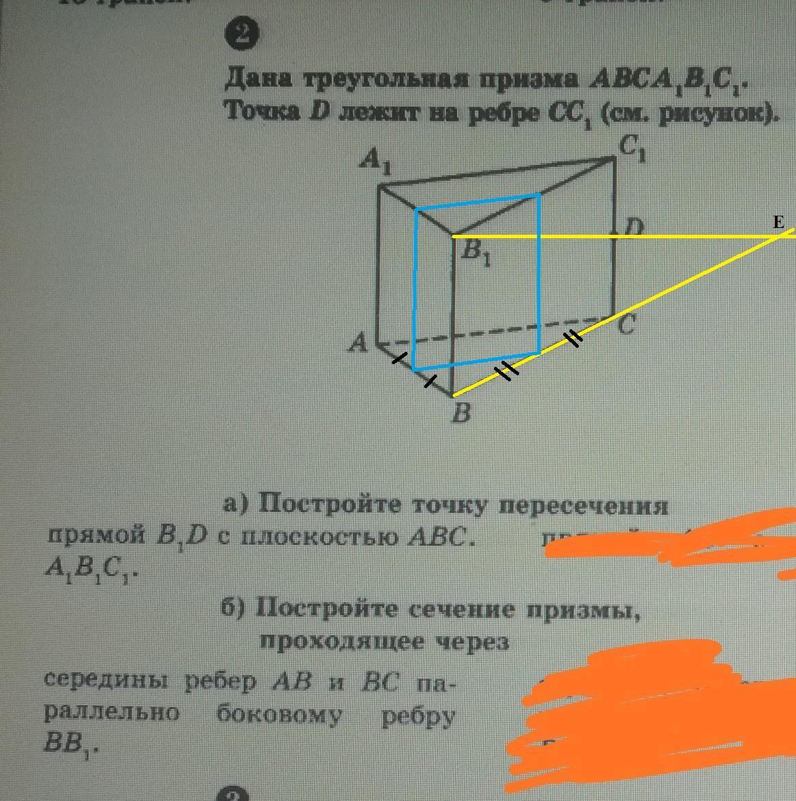 а)это точка пересечения прямых B1D и ВС